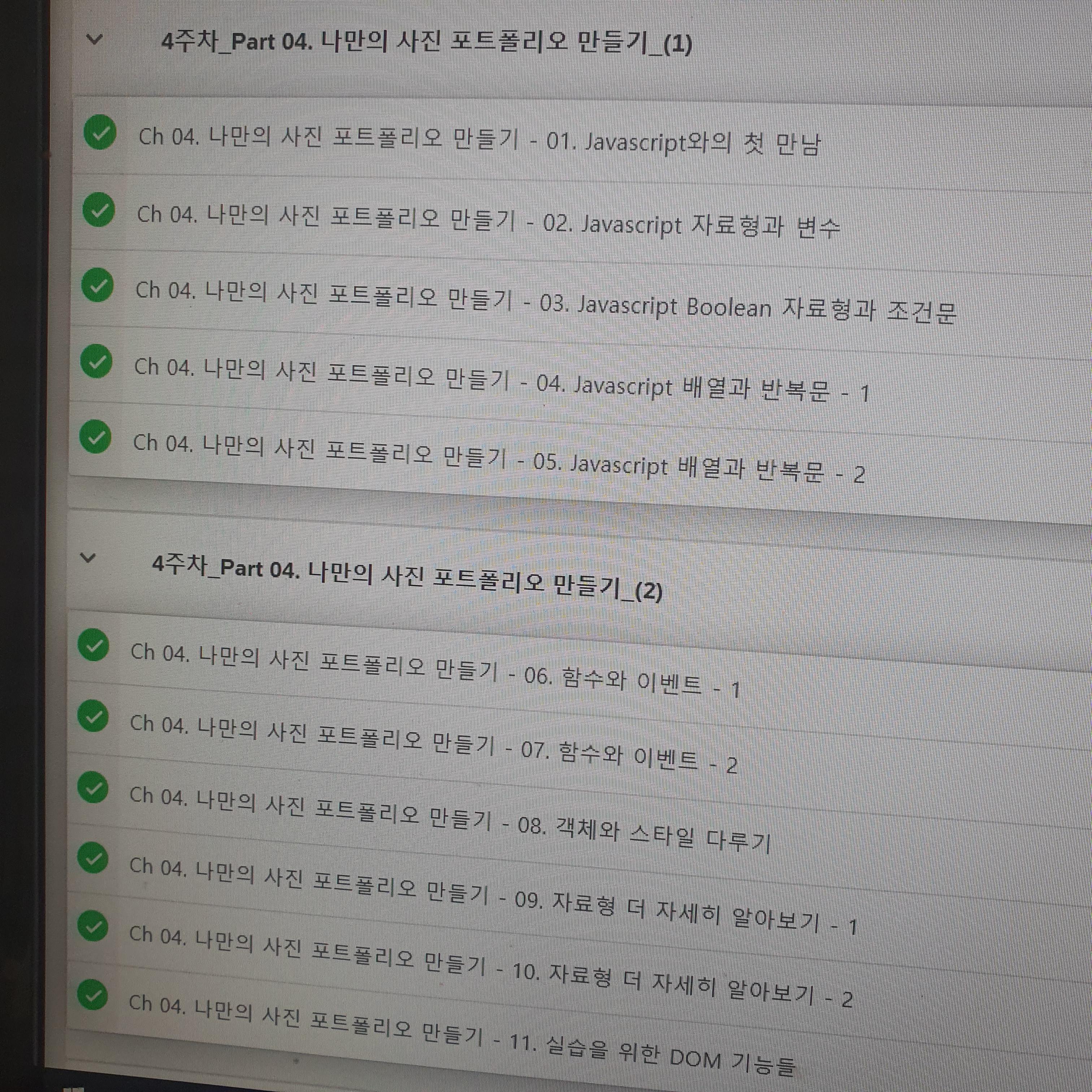 이번 주에는 3주 차 스터디를 진행하였다. 스터디가 한 주 늦게 시작해서 한 주 밀리지만 강의는 4주 차를 맞춰서 잘 들었다. 이번 강의는 자바스크립트에 관한 부분이였고 내가 처음 배웠던 언어이니만큼 애정도가 있는 언어이다.