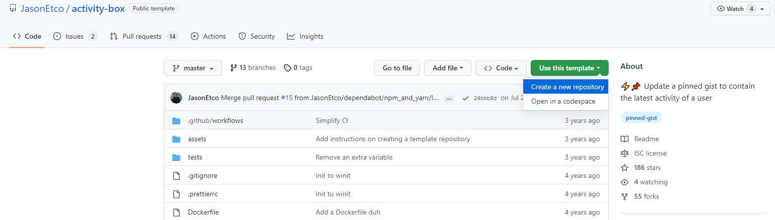 GitHub - JasonEtco/activity-box: ⚡️📌 Update a pinned gist to contain the latest activity of a user