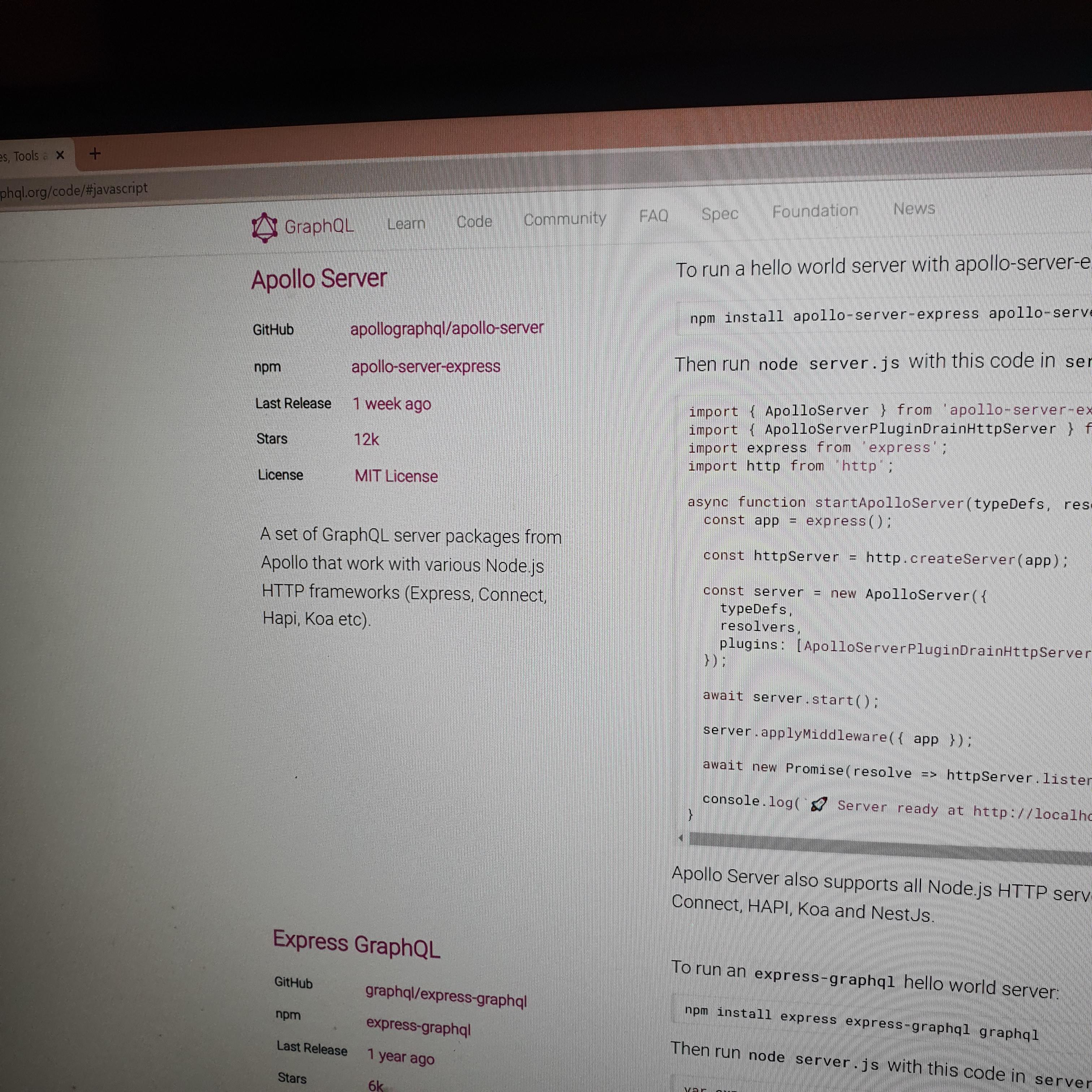 이 강의에서 우리는 자바스크립트를 사용한 Apollo 서버를 사용하게 된다.